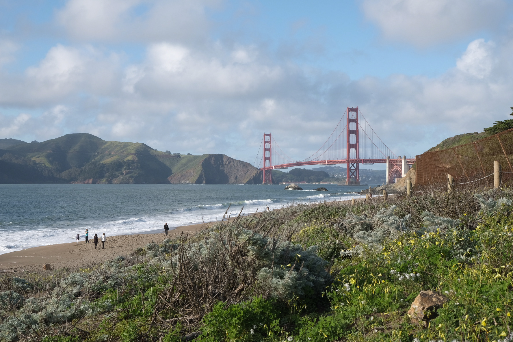 Golden Gate Bridge in San Fransisco, California from Baker Beach and Fort Point.