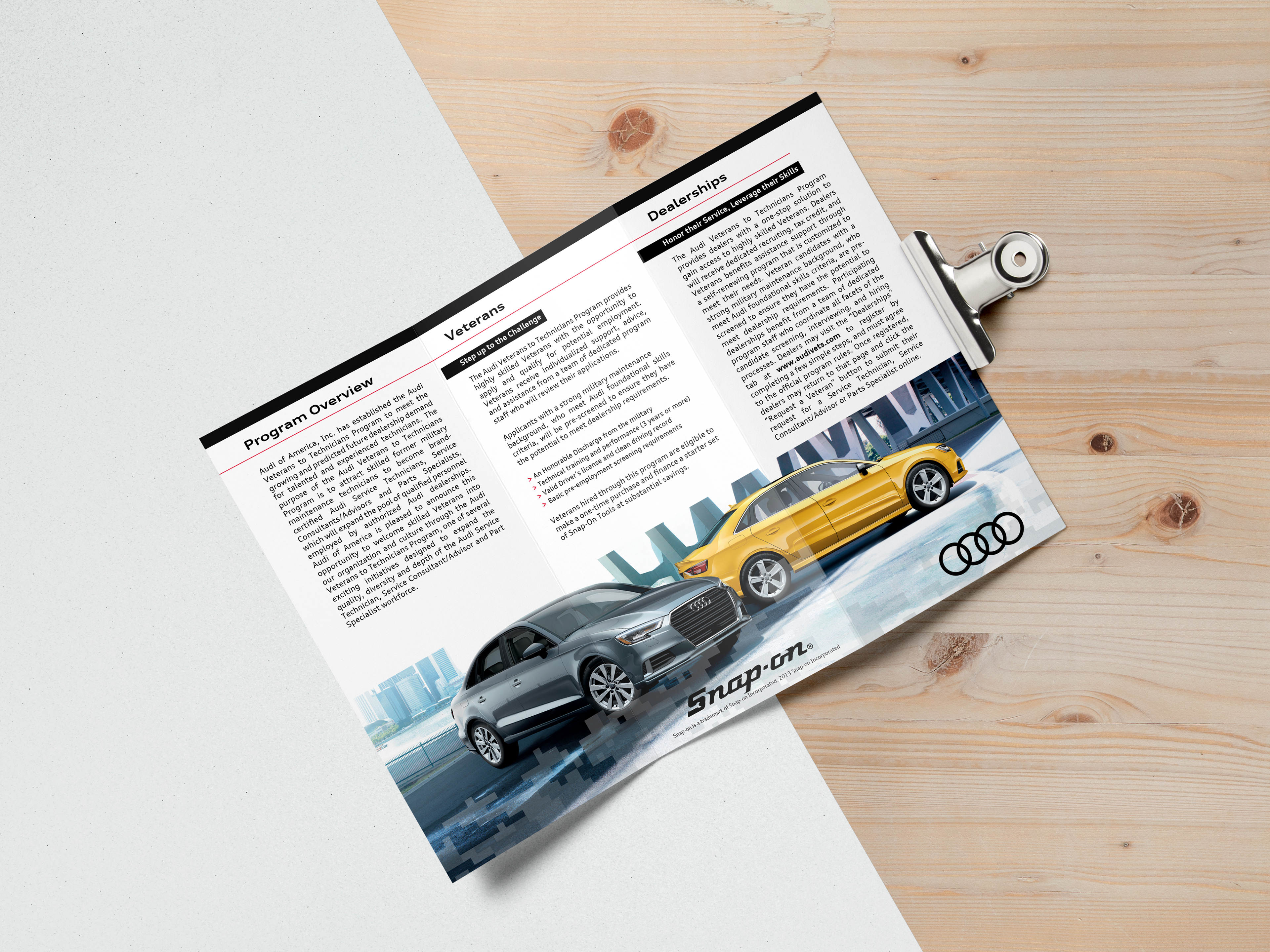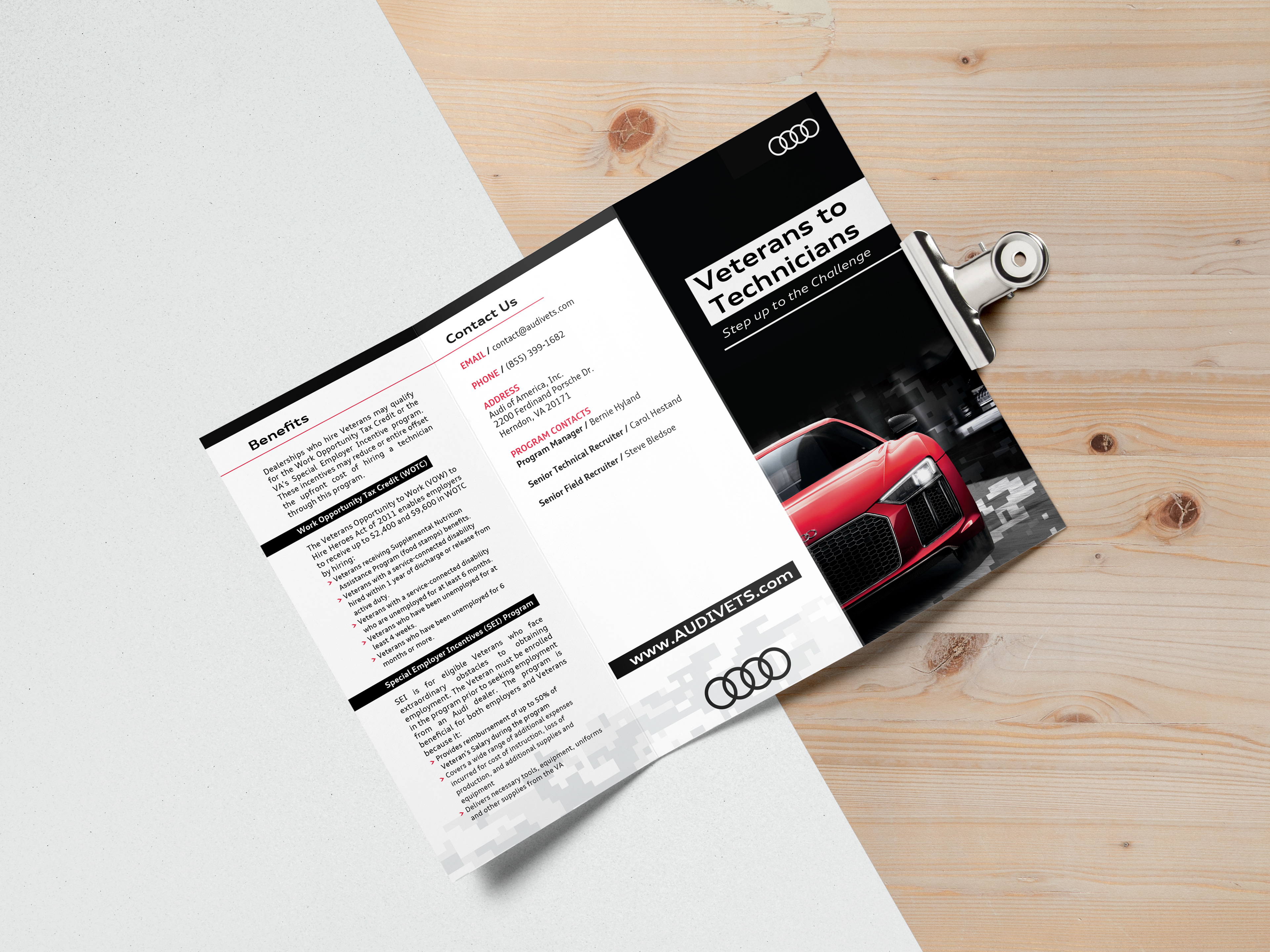 Redesign of outdated Vets to Techs brochure for distribution. Using existing Military Day poster to brand program with the same look and feel.